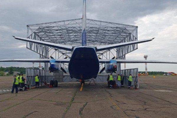 В ангаре могут быть смонтированы 3 ручные лебедки(1 центральная по фюзеляжу и 2 по бокам,для снятия/установки винтов,двигателей.В ангар может быть проведено электричество от распредколонки. Окна,часть крыльев,задняя часть анкара брезентуется для зимы.В задней части брезентового покрытия предусматриваются отверстия для подачи горячего воздуха от МП СЕВЕР или аэродромной машины.