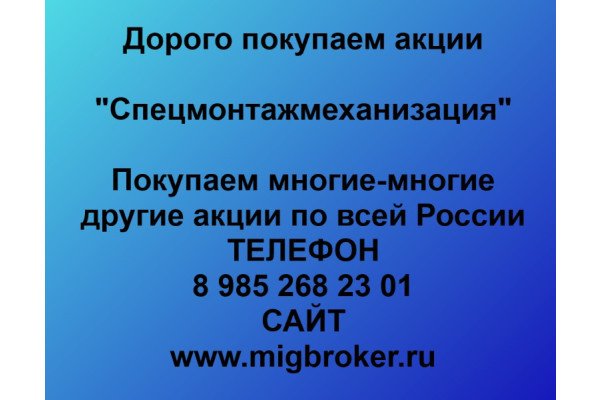 Продать акции «Спецмонтажмеханизация» Безопасная сделка, оплата сразу!