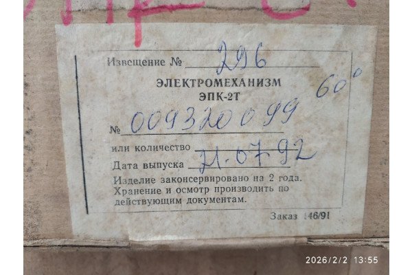 60. Электромеханизм ЭПК-2Т-75 - 1 кат. з/уп., 1992 г.в.
